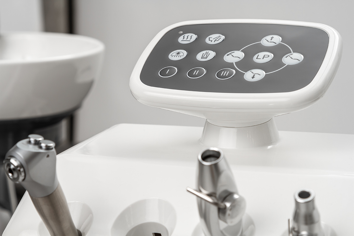 - Эксклюзивный дизайн модуля врача с дополнительным столом для инструментов, встраиваемый электрический мотор со светом и скейлер со светом.